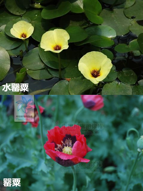 (1)水罂粟和罂粟是不同科属的植物,水罂粟属于泽泻科水金英属,而罂粟是罂粟科罂粟属植物。