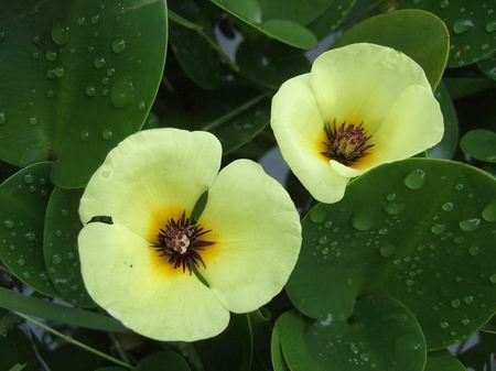 水罂粟(Hydrocleys nymphoides)学名水金英。泽泻科水金英属,浮叶多年生草本。由于其茎呈海绵质感,叶背具有气囊,叶柄具有节状横隔,因此可以浮于水面。叶片呈卵形或近圆形,叶面油亮光滑,叶柄的长度会随着水的深浅而有所变化?;ǖド?,亮黄色,花只有3瓣,花瓣基部是鲜黄色,而花蕊是紫褐色的。蒴果披针形,种子马蹄形?;ㄆ?至9月。