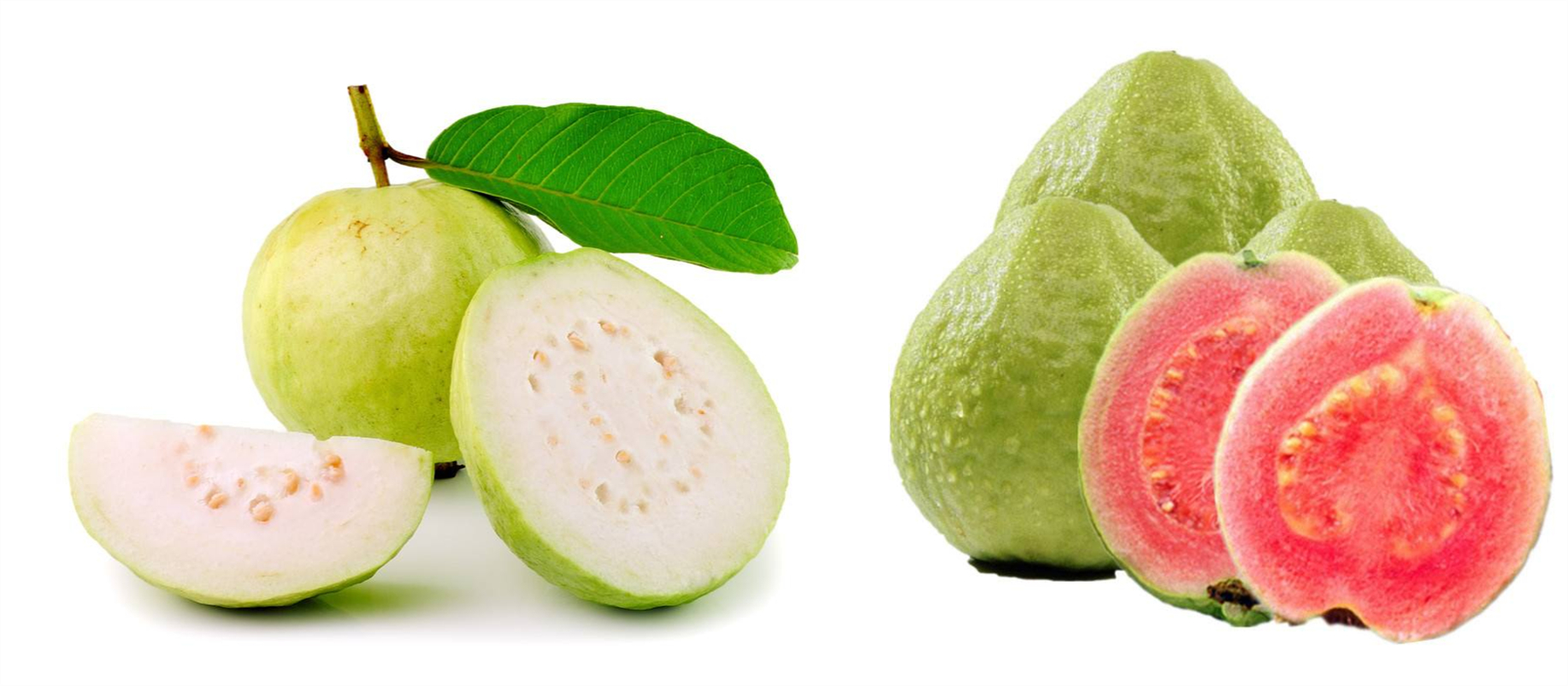 番石榴属于浆果类水果,果实外形有点像梨,成熟的果皮绿中带黄,黄中带白,因品种的不同果肉也有白色和红色之分。白心番石榴口感脆甜,红心番石榴口感更为绵软。番石榴有股特殊的香气,喜欢的人当然觉得香气扑鼻,不喜欢的人,总觉得那香气闻起来有点儿像是鸡屎味,所以很多地方把番石榴也叫做“鸡屎果”?;褂幸恢炙捣ㄊ且蚱渲挚羌?,且不怕禽胃。故而番石榴的种子随粪便排至鸟迹所到之处萌发生长,故有“鸡屎果”之称。