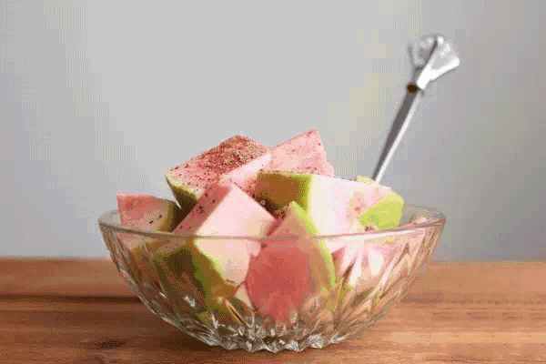 番石榴汁多味甜、肉质细嫩、口感介于梨和青枣之间。番石榴不但可以鲜食,还可榨汁或加工为果酱、果脯,同时有些人还喜欢切块置于碟上,撒上适量酸梅粉或盐巴,搅拌均匀食用。颜值超高的番石榴,其实还是一个营养能量库,含有蛋白质、多种维生素、矿物质及膳食纤维。其中蛋白质和维生素C的含量尤其高,维生素C的含量比柑橘、香蕉、木瓜、番茄、西瓜、凤梨都高。