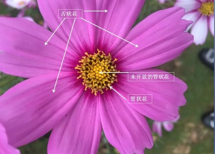 上图这种花,学名叫做秋英(Cosmos bipinnatus)别名叫波斯菊,是菊科秋英属—年生或多年生草本植物,原产于美洲墨西哥。秋英传入中国后,可能是因为西南高原地区的气候比较类似它的原产地,所以在云南、四川、西藏等地区均有大面积归化,在内地大部分地区也广泛栽培用以观赏。秋英的叶为二回羽状深裂,花单生于枝顶(头状花序)。与大多数菊科植物的花序相同,由两性的管状花与无性的舌状花组成,中间形似“花蕊”的部分,实际上是由上百朵小花组成,即管状花;周围一圈看似“花瓣”的部分,实际上每一片都是一朵真正的花,实则为舌状花。我们平??吹降男矶嗑湛浦参?,如向日葵其实也是如此,葵花盘成熟后结出的“瓜子”,便是由中央两性的管状花孕育出的果实,而葵花外围一圈的“花瓣”,是无性的舌状花。秋英种子细小,瘦果前端有钩刺,极易随风力及人畜传播,且适应能力很强。