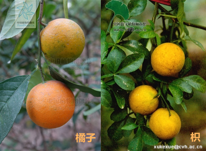 中国有一句特别有名古语——“橘生淮南则为橘,生于淮北则为枳。叶徒相似,其实味不同。所以然者何?水土异也?!庇谑谴蠹叶蓟崛衔俸丸资且桓鑫镏?,只是因为水土问题,橘和枳的味道才不相同。其实这个是不对的!因为枳(Citrus trifoliata)和橘(Citrus reticulata)虽然都是芸香科柑橘属的植物,但是完全不同的两个种。在果树的相貌上,橘和枳就有明显的区别,相对于橘来说,枳更矮小一些;枳冬天就变成了光杆,而橘仍然身披绿叶;枳的叶片为指状三出叶,这跟橘的单身复叶(看起来像一张叶子的复叶)有明显的不同。