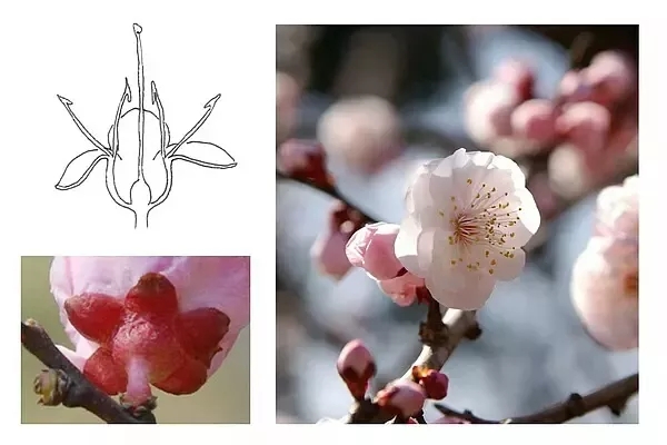 梅花还有一个和山杏的杂交品种杏梅(A. × bungo),花似梅而枝叶如杏。