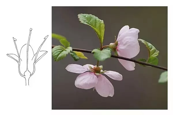 杏属的物种目前已被并回到李属中,但原杏属的几个种类依然关系十分接近,所以依然按照《Flora of China》中的处理方式,将杏属种类单列出来介绍。杏属植物广布整个中国,从新疆的紫杏、西藏的藏杏,到江南的梅,再到东三省的东北杏,在全国各地都能欣赏到杏属植物开花的盛况。从嫩枝上看,梅花的嫩枝是绿色的,而杏花是紫红色的,杏梅介于其间,有红有绿。