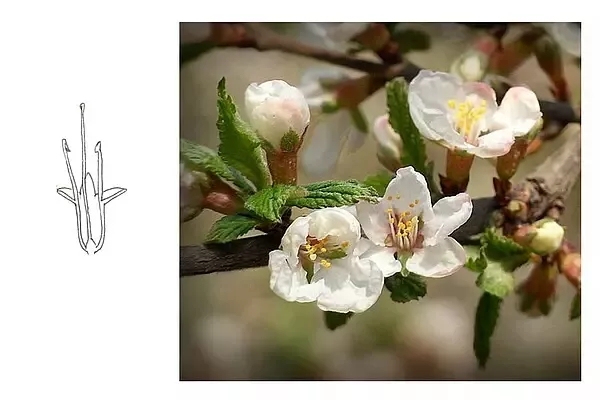 另一种水果市场常见的樱桃车厘子则和中国的樱桃无甚关系,而是来源于原产欧洲的樱属种类欧洲甜樱桃(Cerasus avium),花更大且为纯白色,萼片强烈反折,萼筒球状凸起。