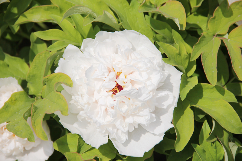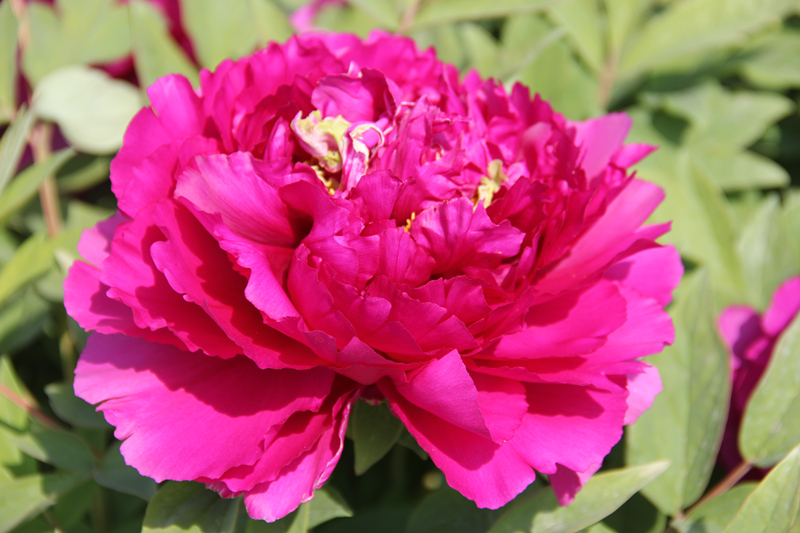 ? 芍药叶片狭窄,先端尖而不再分裂,正反面均为深绿色。