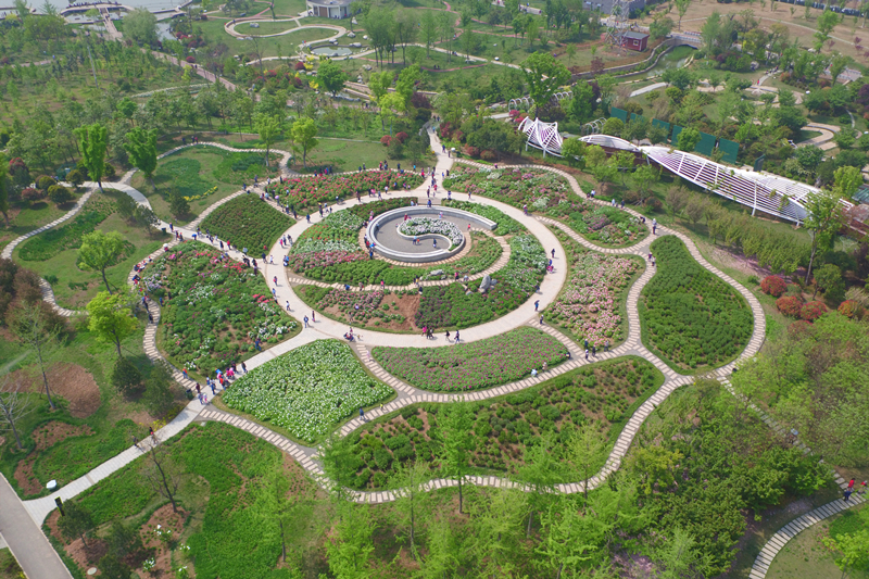 西安植物园的牡丹芍药园以牡丹花瓣形式设计。中心牡丹台用紫黑色的“初乌”做心,粉色的“雪映桃花”装饰,周围设置有九大色系区、十大花型区、品种展示区和观赏区,共有品种350个6000多株。盛开之时,此处将是五颜六色的花海。