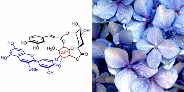△桃金娘素可以与铝离子形成螯合体,就可以得到一个亮蓝色的分子团。