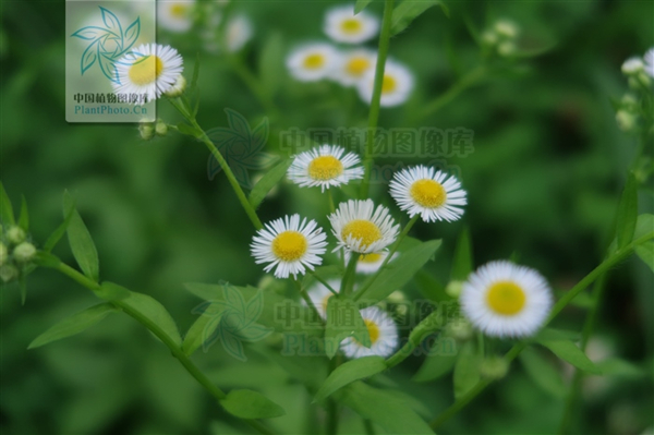 一年蓬(Erigeron annuus)菊科飞蓬属,一年生或二年生草本。原产北美洲。一年蓬茎基部直立,高度差异较大,上端分支,茎干和叶片都有点毛茸茸的,叶边缘有不规则的齿或近全缘。头状花序数个或多数,排列成疏圆锥花序。花朵呈圆形,周围是细细的两层白色雌花舌状(或有时淡天蓝色),中央的管状花黄色,为两性花。一年蓬总喜欢七八朵开在一起,一副清新可爱的小模样。