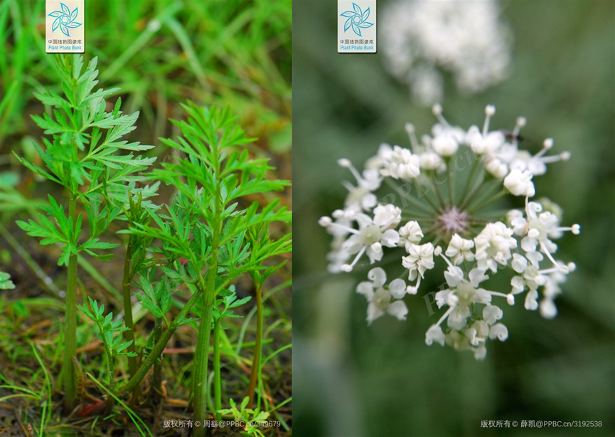 毒芹(Cicuta virosa)伞形科毒芹属的植物,多年生粗壮草本。茎单生、中空,叶片轮廓呈三角形或三角状披针形、2-3回羽状分裂;裂片线状披针形或窄披针形,边缘疏生钝或锐锯齿;复伞形花序顶生或腋生,花瓣白色,倒卵形或近圆形。产黑龙江、吉林、辽宁、内蒙古、河北、陕西、甘肃、四川、新疆等省区。生于海拔400-2900米的杂木林下、湿地或水沟边。分布于俄罗斯的远东地区、蒙古、朝鲜、日本。