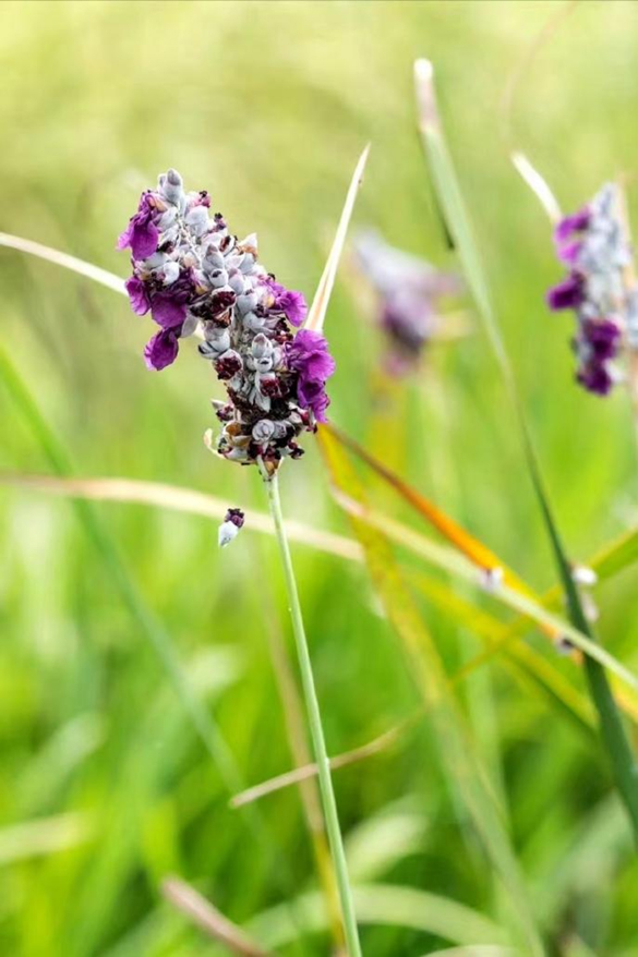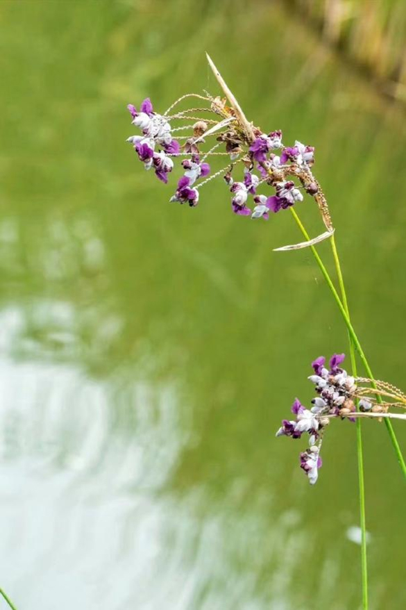 原产于美国南部和墨西哥的热带湿地。全株附有白粉,叶片互生、卵形,似美人蕉叶,叶色翠绿;花小,花序高出叶面,细长的花茎顶端开出紫色花朵,随风轻轻摆动,远远望去,好似亭亭玉立的仙子在水上舞蹈。再力花还有着“水上天堂鸟”的美称。