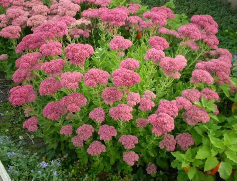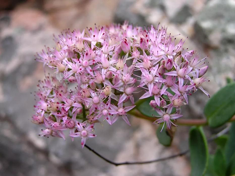 还有一个是景天科八宝属的常见植物“长药八宝”(Hylotelephium spectabile)俗名八宝景天。多年生草本。茎直立,高30-70厘米。叶对生,或3叶轮生,卵形至宽卵形,或长圆状卵形,全缘或多少有波状牙齿;伞房状花序顶生,花瓣5,淡紫红色至紫红色,披针形至宽披针形,花药紫色。它的果实是蓇葖果,蓇葖果是由单心皮雌蕊或者离生心皮雌蕊发育而来的,单心皮雌蕊发育成单独的蓇葖果,离生心皮雌蕊发育而成的聚合蓇葖果,成熟时果实仅沿一个缝线裂开。我们熟悉的香料八角就是蓇葖果。