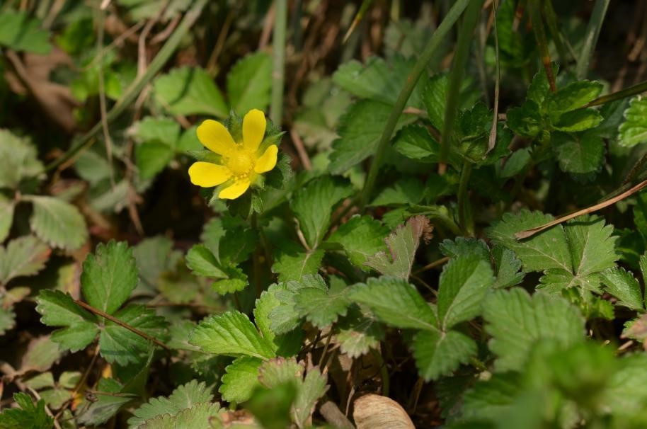 蛇莓(Duchesnea indica )蔷薇科、蛇莓属,多年生草本植物。产于辽宁以南各省区。在中国古代传说中,这种植物生长在蛇经常出没的地方,因而得名蛇莓。这种说法听起来颇具神秘色彩,实际上蛇莓的生长习性并没有什么特别之处,它们只是偏爱阴暗湿润的环境,通常生长在山坡、河岸、草地、潮湿的地方。