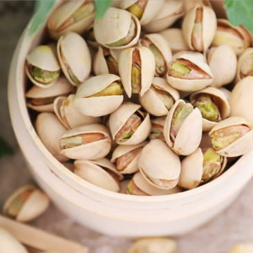开心果和腰果都是漆树科的家庭成员,只不过开心果壳并不像腰果壳具有毒性,所以我们吃到的腰果都是脱壳的,而开心果都带着白色的壳。我们现在吃的开心果并不是完整的果实,而是去掉了外果皮的样子。其白色壳的外面,实际上还包裹着一层薄薄的肉质外果皮,这层果皮在采收之后就会被去除。为了保证绝大多数开心果都能充分“开心”,加工厂会把去皮干燥后的开心果统一放在装有刀片、锯齿的机床上翻滚,让其更加“开心”,从而方便我们食用里面的种仁,也就是我们吃的开心果仁。开心果的营养丰富,其种仁含蛋白质约20%,含糖15%~18%,还可以榨油。