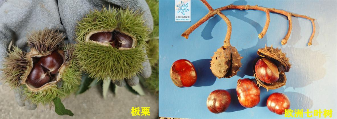 有一种植物,和板栗几乎同期成熟、长得还很像,经?;崛萌松瞪捣植磺宄?。这个“高仿”板栗的家伙就是无患子科七叶树属的欧洲七叶树(Aesculus hippocastanum)。欧洲七叶树的果实去掉外壳后,内部的种子和板栗有些相似,所以也有了马栗这个俗名。欧洲七叶树全株有毒,含有七叶皂苷和其他生物碱有毒成分,以嫩芽和果实毒性最强,误食可能引起中毒以致死亡。所以千万别在路上捡这个东西吃。