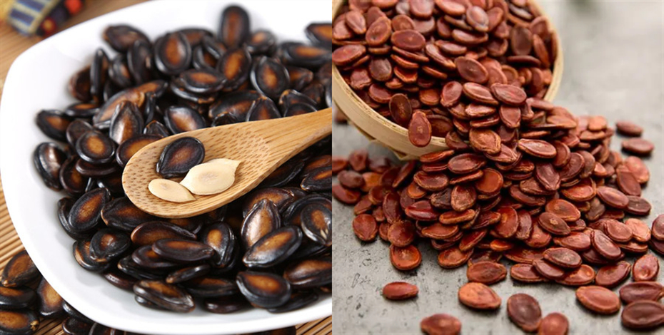 根据种皮颜色不同,籽瓜的子被大体分为两个派别:黑皮肤的黑瓜子(黑籽瓜)和红皮肤的红瓜子(红籽瓜)?!昂谧压稀敝饕植荚诟仕?、新疆、内蒙古等省区;“红籽瓜”分布于广西、宁夏、安徽、江西、湖南和广东等地区,总体呈现出“南红北黑”的生产格局。然而,不管黑瓜子还是红瓜子,它们都是身宽体平,饱满有型,皮滑发亮,味美仁香,同时也是磷、钾和镁等微量元素的极好来源。