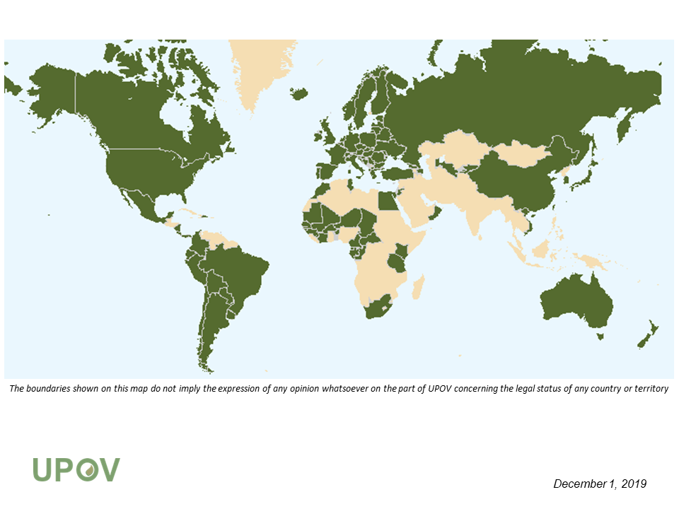 国际植物新品种?;ち?International Union For The Protection Of New Varieties Of Plants),简称 UPOV,是一个政府间的国际组织,总部设在日内瓦。UPOV是依据国际植物新品种?;す?“UPOV公约”)建立的。UPOV公约于1961年11月由比利时、法国、联邦德国、意大利和荷兰在巴黎签署。至今有成员国76个,包括93国家。UPOV的职责主要是协调和促进成员国之间在行政和技术领域的合作,特别是在制定基本的法律和技术准则、交流信息、促进国际合作等方面发挥着重大作用。成员国根据国际植物新品种?;す脊娑ǖ?/font>原则,分别对植物新品种授予品种权。