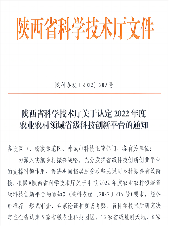 近日,陕西省科学技术厅公布了2022年度农业农村领域省级科技创新平台认定和评估结果,我园洋县木兰产学研示范基地被认定为省级县域科技创新试验示范站。这也是我园首个县域科技创新试验示范站。