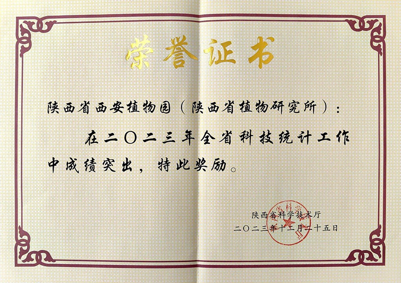 近日,陕西省科技厅召开了2023年度陕西省科技统计工作总结会,根据《科技部科技统计工作管理办法》相关规定要求,经组织评选授予陕西省西安植物园(陕西省植物研究所)2023年度陕西省科技统计工作优秀奖。据悉,全省共有30家科研单位获此殊荣。