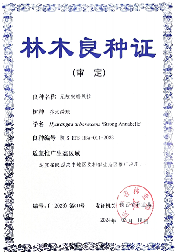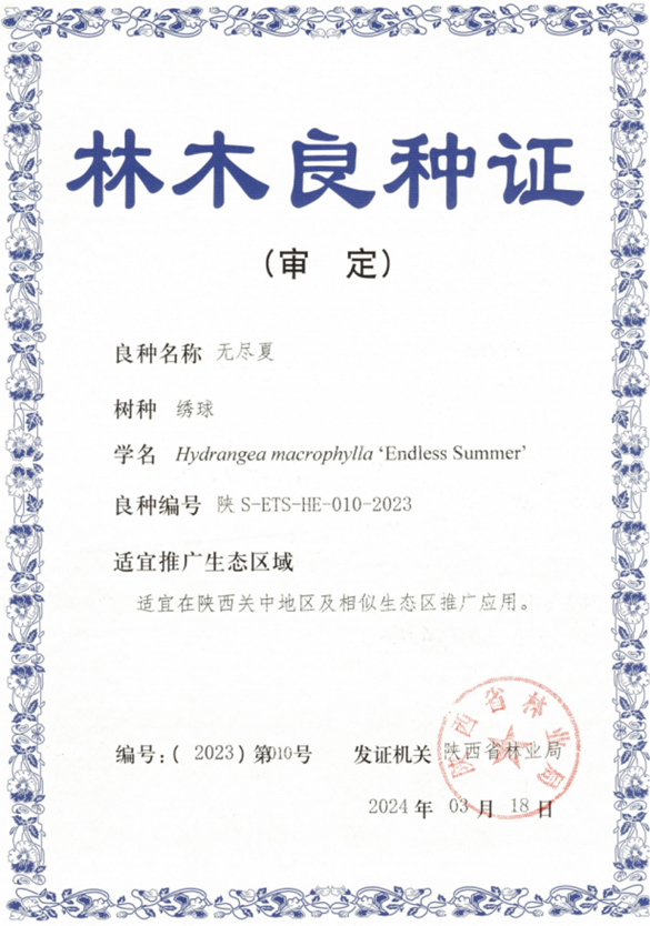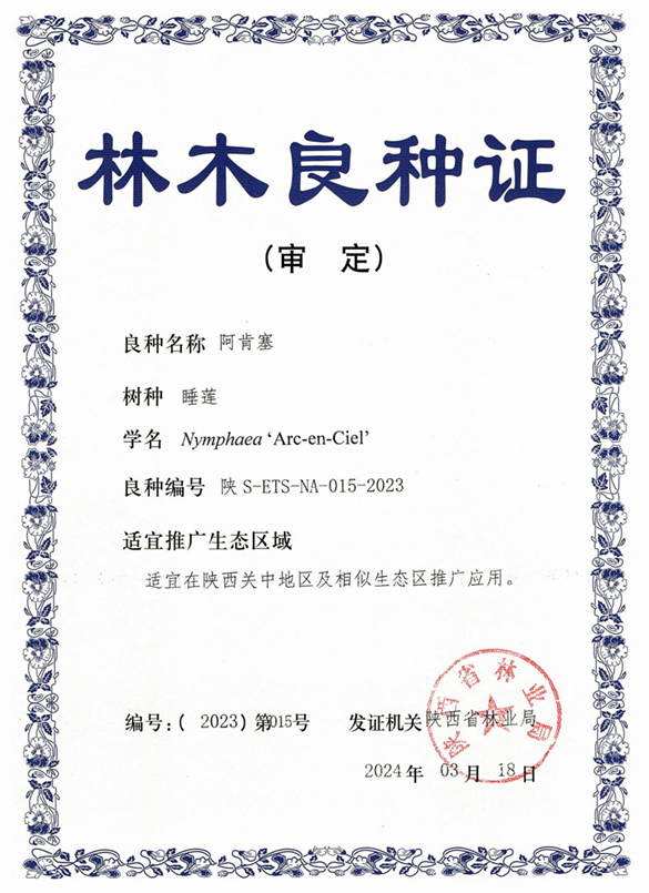 近日,由我园特色观赏植物引种驯化选育及应用研究团队引种选育的‘无敌贝拉安娜’、‘无尽夏’2个绣球品种,水生植物与湿地修复研究团队引种选育的‘阿肯赛’、‘彼得’、‘粉牡丹’、‘玛依拉’4个睡莲品种以及‘赛博斯坦斯’、‘佛朗斯’2个玉簪品种通过2023年度陕西省林木及草品种审定委员会审定,获得林木良种证书。同时,由特色农业与环境植物学团队引种选育的‘波尼’、‘马罕’2个薄壳山核桃品种通过了2023年度陕西省林木及草品种引种备案。未来上述良种将广泛应用于我省园林绿化,生态修复及乡村振兴等领域。