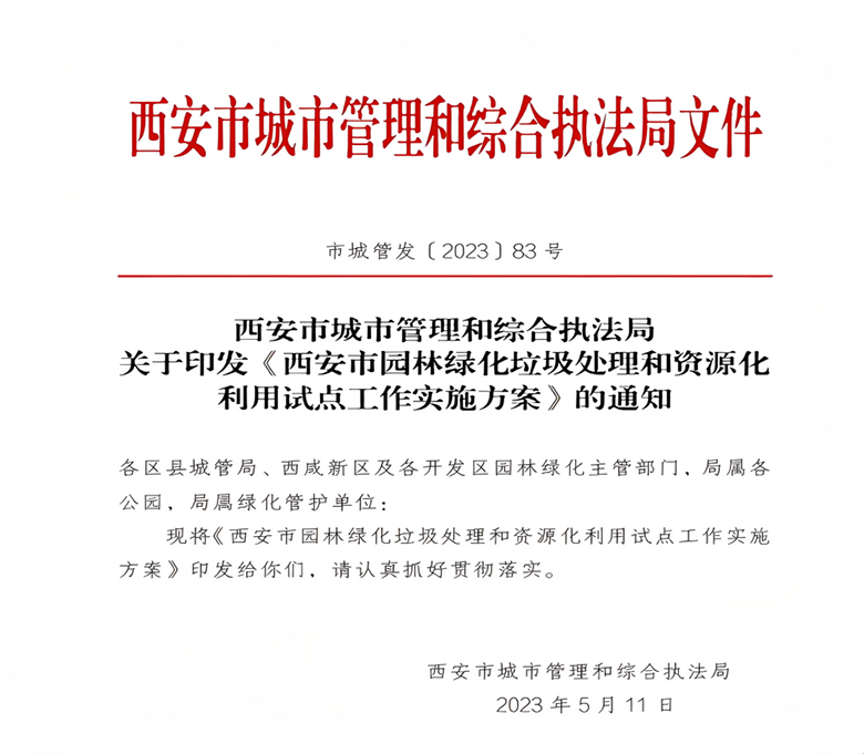 2022年11月1日住房和城乡建设部办公厅发出《关于开展城市园林绿化垃圾处理和资源化利用试点工作》的通知,2023年5月11日西安市城市管理和综合执法局发出关于印发《西安市园林绿化垃圾处理和资源化利用试点工作实施方案》的通知。目前国内关于园林植物废弃物无害化处理的相关规范有国家行业标准,北京市、河北省、山东省等少数省市也分别制定了地方标准。我省关于园林植物废弃物无害化处理的规范起草迫在眉睫。