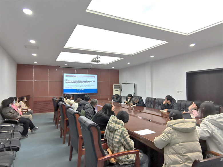 报告阶段,井光花分享了最新发表在《Nature Communication》题为“Microbial trait multifunctionality drives soil organic matter formation potential”的论文,文章发现不同土壤有机质功能池的形成与特定的真菌性状相关,而在关键性状组(包括碳利用效率、生长速率、周转速率以及生物量蛋白质和酚含量)中表现为中等投入的“多功能”物种能够促进土壤有机质的形成和功能的复杂性与稳定性。周惠娟分享了发表在《Nature》题为“Pan-genome bridges wheat structural variations with habitat and breeding”的论文,该研究发现VRN-A1基因的突变和复制会导致普通小麦从春性到冬性类型转变以适应环境变化,以及我国西北地区小麦品种的变化与饮食习惯、迁移和文化融合相关。17个代表性的小麦高质量基因组的构建以及泛基因组数据对于未来小麦遗传育种提供了非常重要的平台和基础。