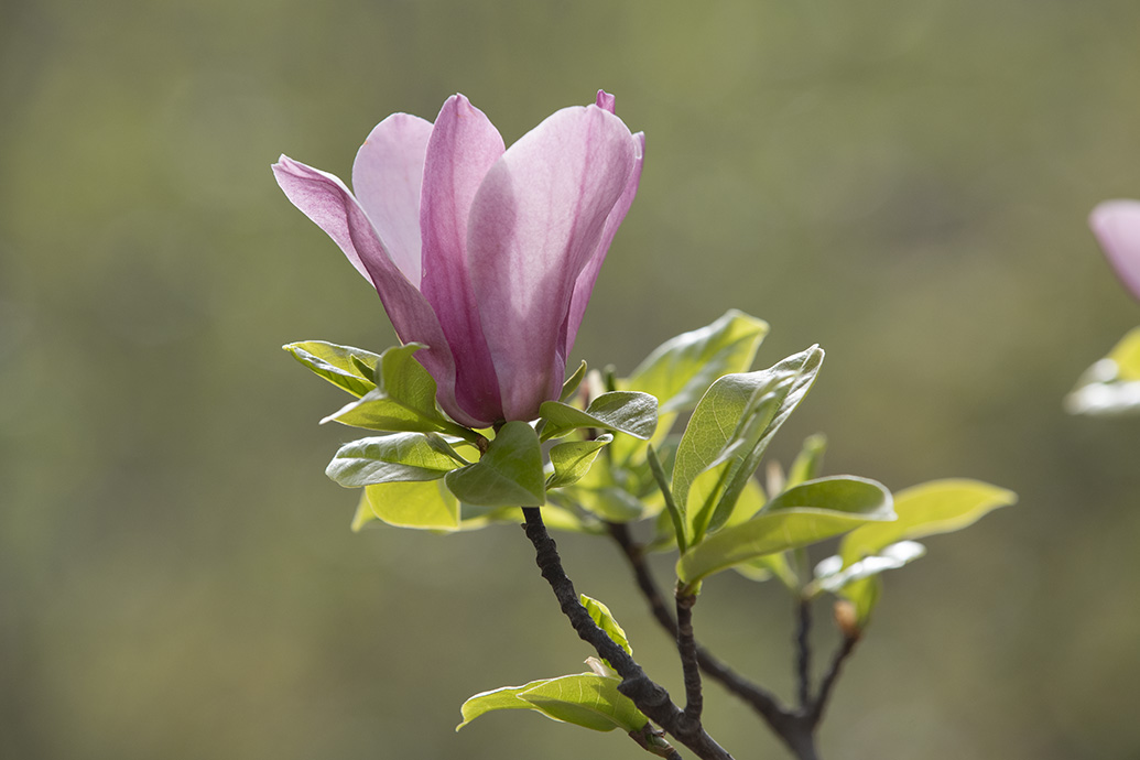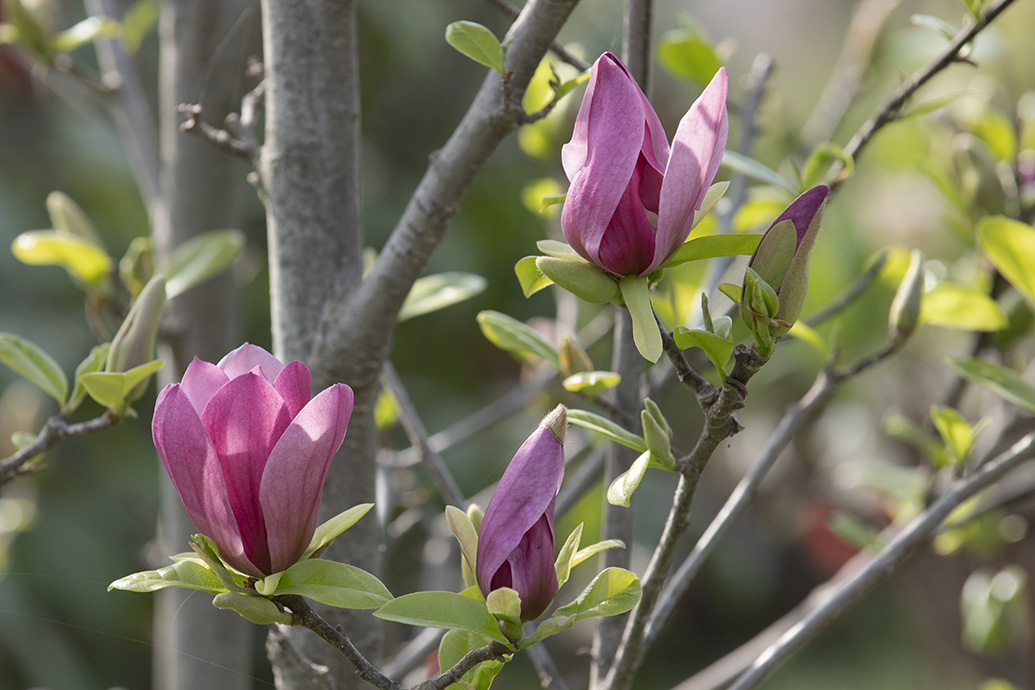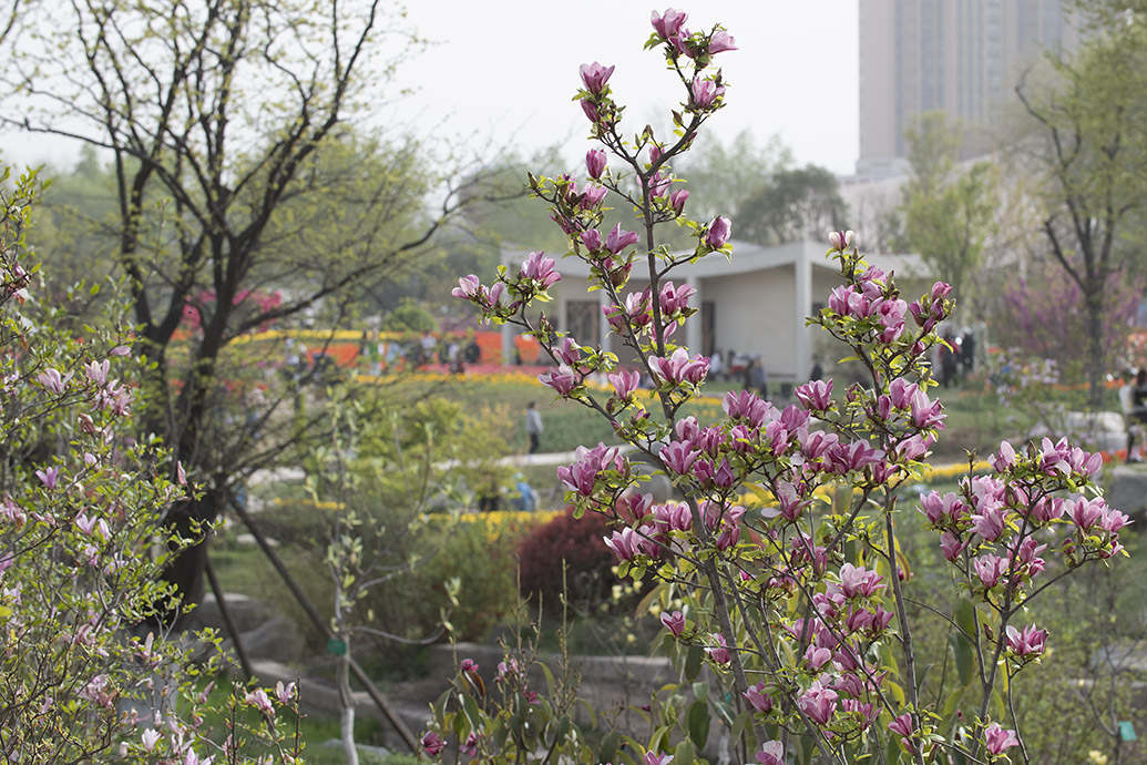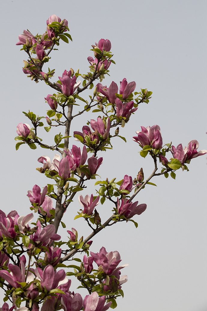 株形紧凑,冠幅饱满。长势旺盛,2年生嫁接苗株高150 cm,冠幅100~120 cm,地径3 cm。每年4月为集中开花期,6月中下旬开始二次开花,陆续至10月下旬。花小、繁密,花径6~9 cm,花被片9~10,外轮3,舌形萼片状,淡黄绿色,中内轮6~7,外面紫红色,内白色。雌雄蕊群紫红色。绿叶期在西安地区长达8个月。本品种为三倍体植株,不结实。