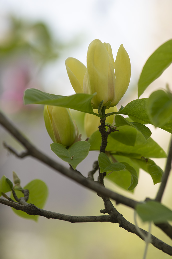 形态特征: 落叶乔木,树形塔状、紧凑。叶纸质,椭圆形、长圆形、卵形或倒卵形。花杯状,径8-11cm,花被片9片,花被片外轮三角形萼片状,淡绿色,中内轮花被片宽倒卵状勺形,黄色,基部黄绿色。花径?;ㄆ?月,在夏季、秋季零散开花。果期8月。 来源: 美国。 植物类型:乔木 高度:5-8m 冠幅:2-3m 适生范围:7-9区 需光性:喜阳 花色:黄色 花期:4月 特点:花期晚,花期较长,黄花玉兰中花色最黄的品种,抗性强。 土壤PH值:弱酸、中性和弱碱土壤皆可 繁殖方式:播种、嫁接。