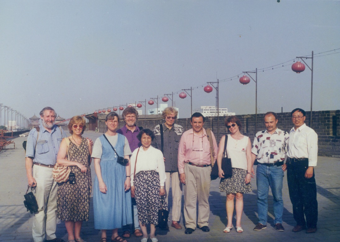 2002年英、法、德等八位苔藓专家访问西安植物园苔藓植物标本室,在西安城墙上留影
