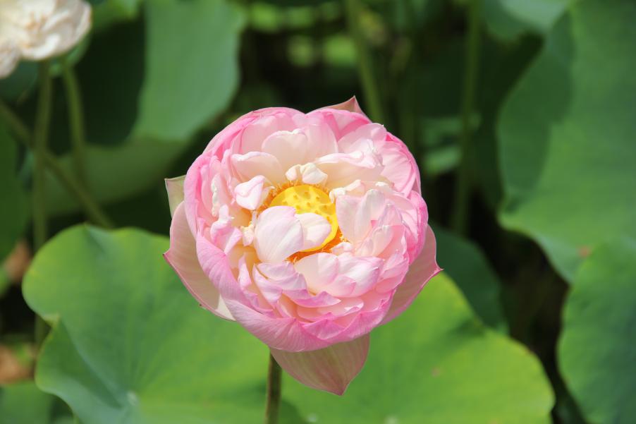 “接天莲叶无穷碧,映日荷花别样红”,一句话使得植物园中的荷花美景乍然出现在眼前。走进植物园,循着荷花特有的清香,便可找到绽放荷花的倩影。水景园中的荷花无论是含苞时的娇羞,初绽时的稚嫩,怒放时的舒展,每一眼都让你停留在无边美景与绚烂花海勾勒出的秀丽画卷中。一阵阵微风吹过,清香袭人,荷花迎风摇曳,宛如仙女下凡,翩翩起舞。除了水景园里的荷花,在西大门水景园平台处还采用了盆栽和缸栽的形式组景,为游客打造了一处零距离观赏荷花的区域。