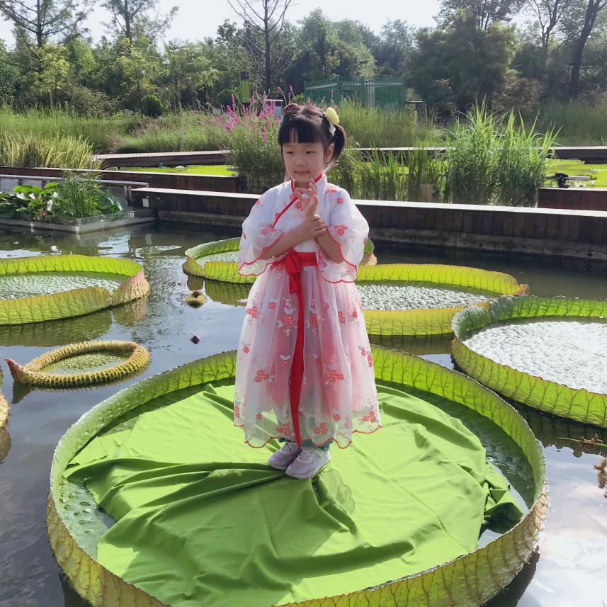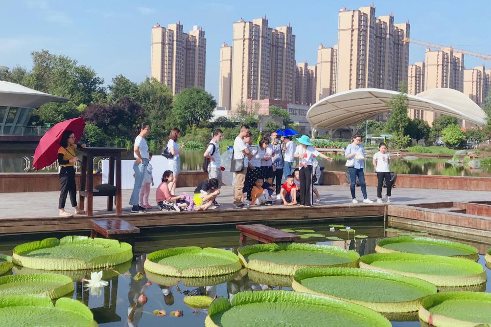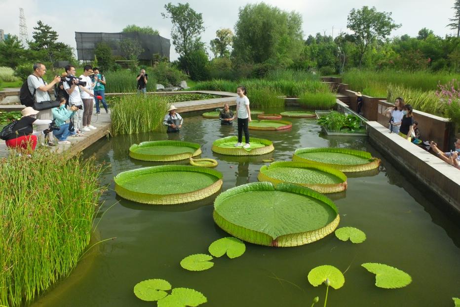 2020年西安植物园夏季花展在7月18日拉开了帷幕,而今年花展的重头戏就是水景园中铺满的王莲。7月26日上午,王莲池的旁边聚集了不少游客,西安植物园举办的“萌娃坐王莲”科普体验活动,迎来了首批体验者。