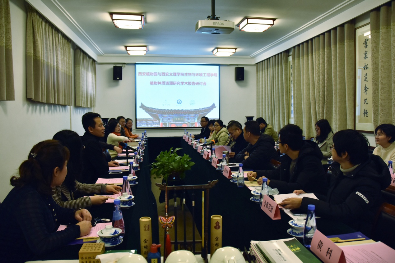 近日,陕西省西安植物园与西安文理学院生物与环境工程学院在西安文理学院·关中书院共同举办了植物种质资源学术研讨会。西安文理学院生物与环境工程学院院长鲍锋、陕西省西安植物园主任岳明教授、西安文理学院学位与研究生管理处处长郑旻、西安秦岭研究院常务副院长石靖、生物与环境工程学院副院长张九东、陕西省西安植物园副主任刘立成及相关科研骨干出席本次会议,会议由西安文理学院生物与环境工程学院苏丽艳博士主持。