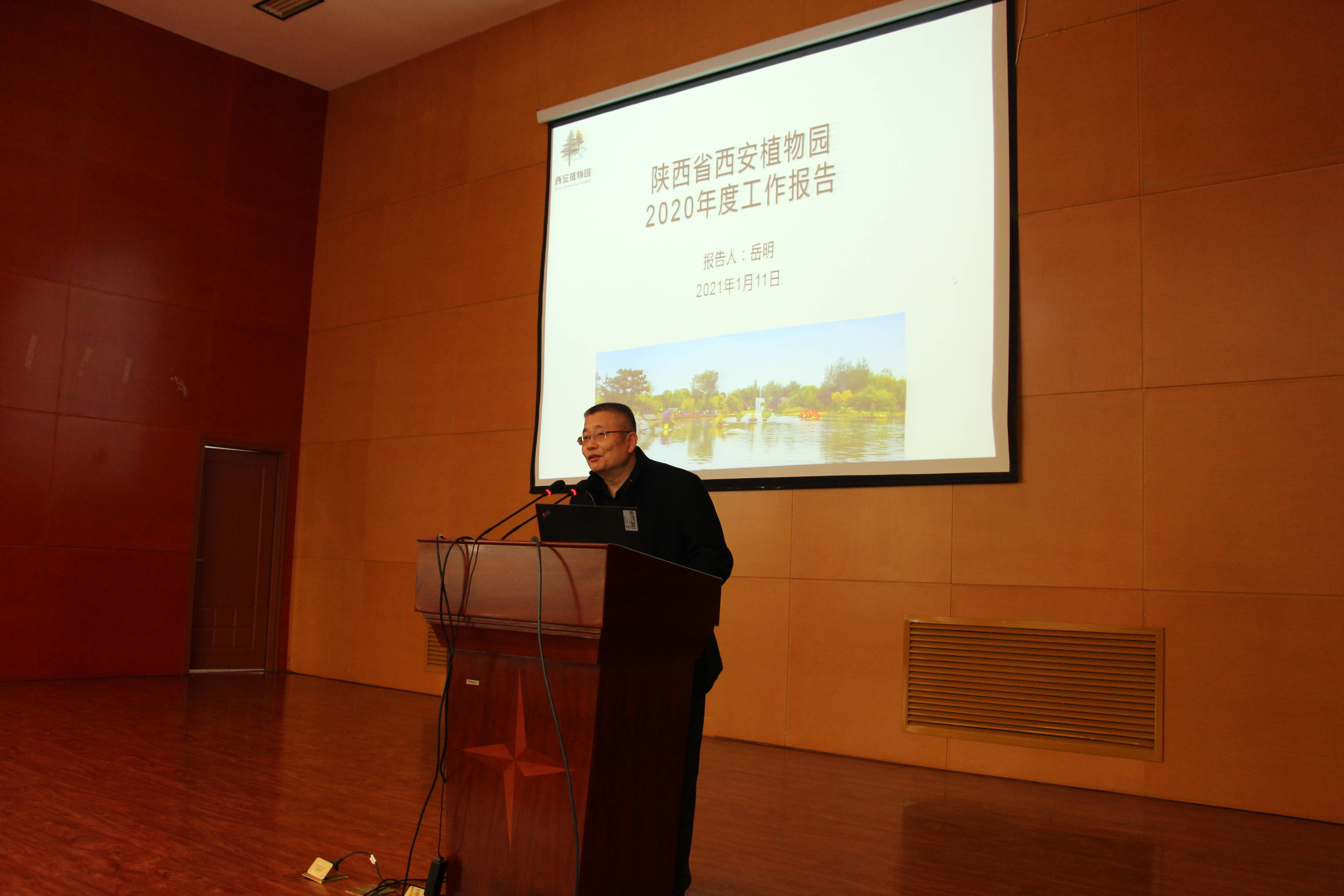 随后,西安植物园主任岳明代表植物园领导班子做了2020年度工作报告。报告全面总结回顾了西安植物园2020年领导班子过去一年的工作及取得的成绩。2020年,西安植物园领导班子在院党组的领导下,深入贯彻十九大精神,结合植物园发展面临的新问题、新形势,坚持目标导向、问题导向相统一,强化体制机制建设、深化管理模式,以提质增效为目标,提升科研水平和新园区运营为重点,推动植物园各项事业发展。一年来,西安植物园在民生、科研、科普及园区管理等方面均取得了显著成效,下一步将完成植物园十四五事业发展规划,提升园区运营能力,完善自我造血功能,调整重组科研团队,加快培养科研领军人物,继续推进“一体两翼”,实现科研、科普、园区管理协同发展,打造科普教育品牌,加强生态环境教育的创新形式,尽力解决新园区遗留的土地、规划及欠款问题,继续推进家属楼建设,积极推进西安科学园建设工作,夯实基础,保障植物园的科学发展,为实现西安植物园发展目标做出更大的贡献。