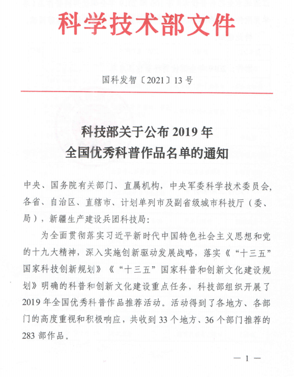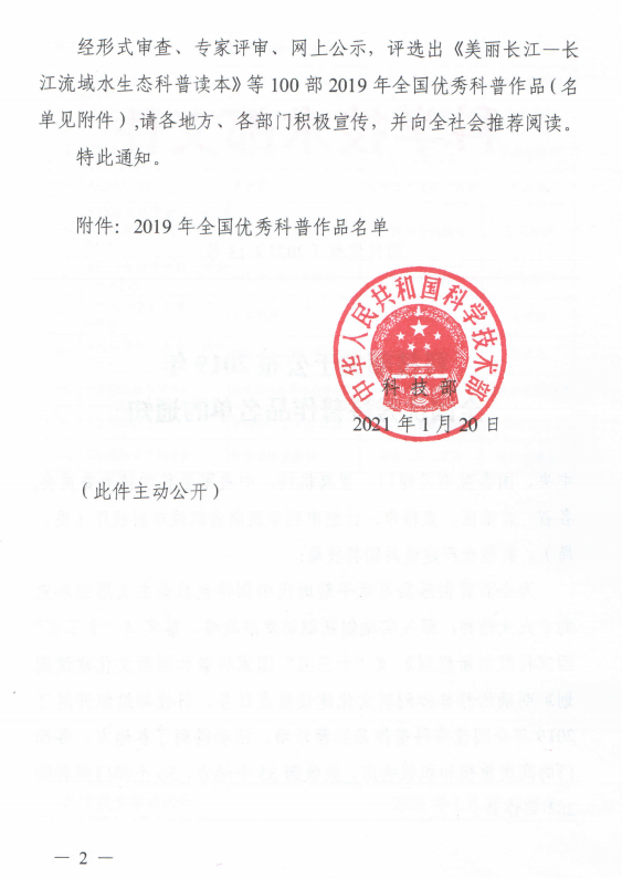 近日,陕西省西安植物园卢元老师的《好孩子的自然观察课-叶》一书获得科技部颁发的“2019年全国优秀科普作品”证书。