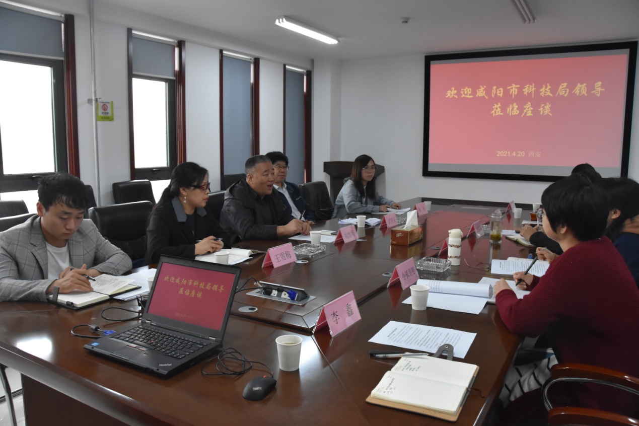 为充分挖掘西咸两地科技创新资源潜力,力争让省内最新科技成果在咸阳落地转化。4月21日,咸阳市科技局四级调研员刘增用、农技推广站站长武明安等一行五人来我园开展“三包三促”调研活动。我园副主任刘立成、科研中心主任李艳研究员、副主任令狐昱慰、副主任陈智坤等出席本次会议。