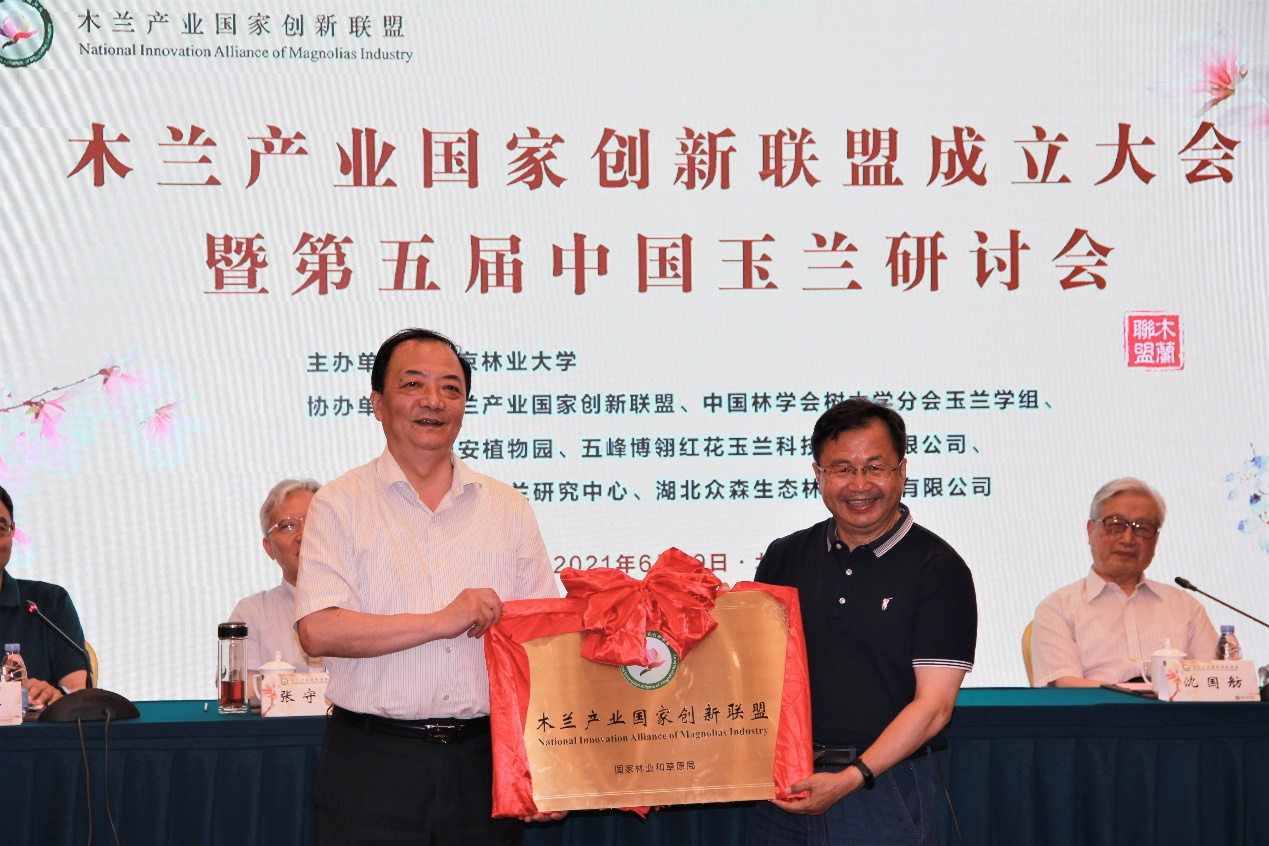 2021年6月18日-19日,木兰产业国家创新联盟(National Innovation Alliance of Magnolias Industry)成立大会在北京西郊宾馆召开。陕西省西安植物园当选木兰产业国家创新联盟副理事长单位。我园王亚玲研究员当选联盟理事会副理事长及秘书长。