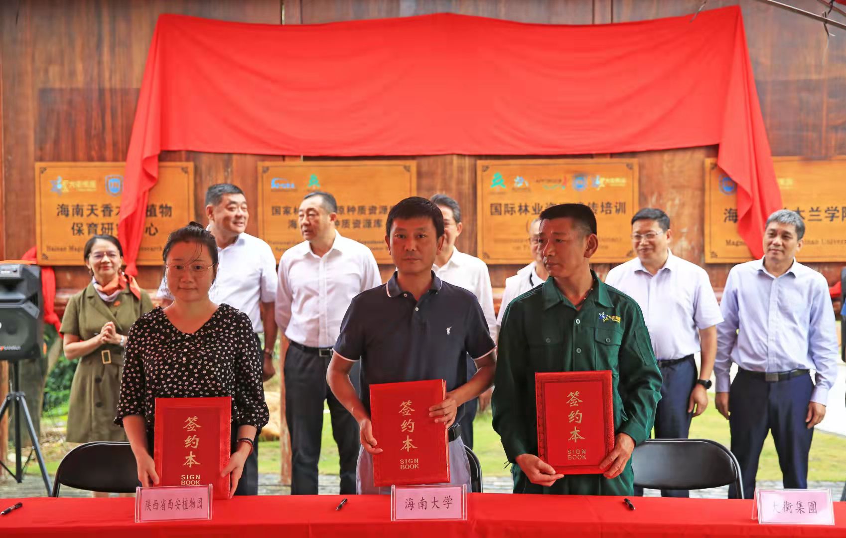 2021年10月19日,陕西省西安植物园、海南大学林学院和大衛集团·海南大卫投资有限公司三方在海南天香木兰植物保育研究中心正式签署战略合作协议,拟在木兰野生和栽培资源收集保护、种质创新和产业化研究开展合作,联合培养木兰科学研究后备人才,共同推动木兰科植物资源?;ず拖喙夭捣⒄埂4舜吻┰蓟疃?,还进行了大卫公司加入国际植物园?;ち耍˙GCI)的揭牌仪式,国际竹藤中心热带森林植物研究所与海南大学林学院战略合作签约仪式。
