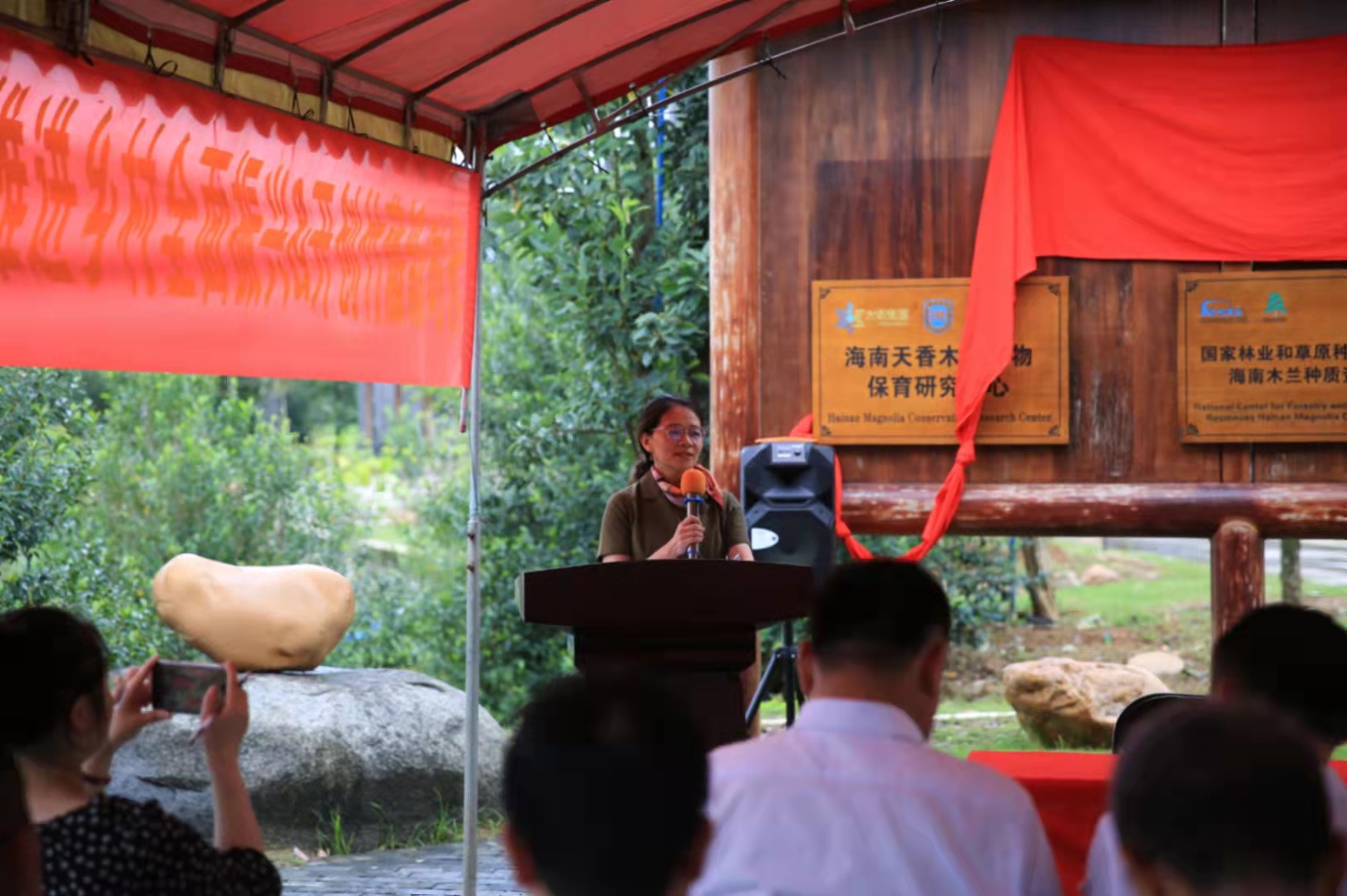 此次活动,受到海南省儋州市委、市人大常委会、市政府的高度重视和大力支持。海南省林业局党组书记黄金城局长、儋州市人大常委会王克强主任、海南大学曹兵副校长、海南大卫投资有限公司首席执行官陈春国总裁、BGCI中国办公室执行主任文香英主任先后致辞。由于疫情原因,陕西省西安植物园岳明主任、刘立成副主任和王亚玲研究员一行未能到场出席活动,岳明主任的致辞由嘉宾在活动中代为宣读。