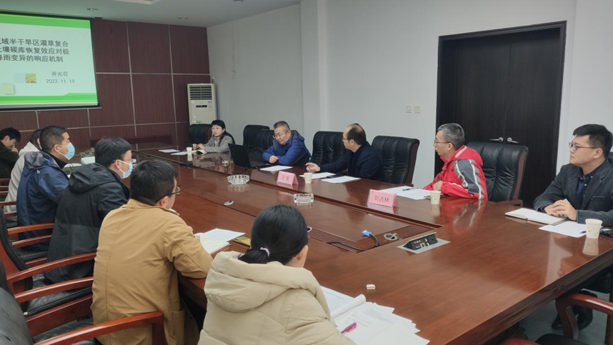 为扎实推进我园2023年度国家自然科学基金申报,提升基金申报质量,2022年11月19日,陕西省西安植物园邀请西北大学刘占林教授、王俊教授及陕西师范大学王国栋教授来我园参加2023年国科金座谈会,会议由岳明主任主持,线下线上同时进行。