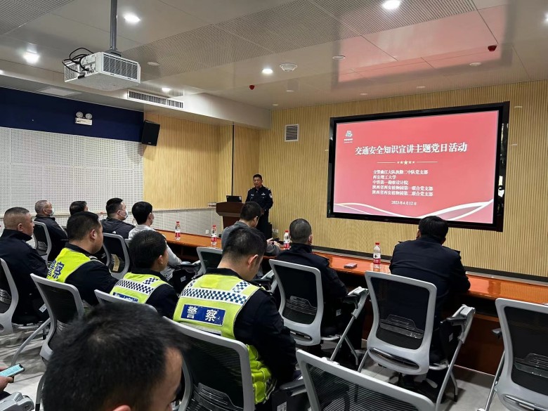 交警曲江大队执勤二中队党员民警张浩然给与会所有党员开展了交通安全知识宣讲,内容涉及日常行车安全、乘车安全、交通事故的预防和处理、“一盔一带”等等,并通过分析讲解典型事故案例,提升了大家的交通安全意识。党员们纷纷表示受益匪浅。