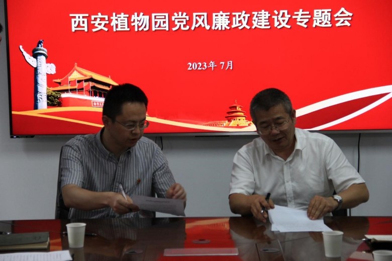 7月12日下午,陕西省西安植物园召开2023年党风廉政建设专题会暨党风廉政责任书签订仪式。我园领班子成员、党委委员、纪委委员和各部门负责人及各党支部委员参加,会议由纪委书记韩桂军同志主持。