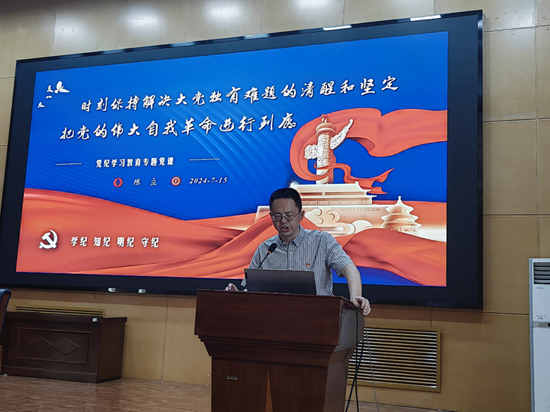 党委书记陈立做了党纪学习教育专题党课《时刻保持解决大党独有难题的清醒和坚定 把党的伟大自我革命进行到底》,从新时代新征程新命题、治党治国的特殊难题、把党的自我革命进行到底三个方面做了深入的阐述,引经据典从历史的维度,深入阐述了中国共产党时刻保持解决大党独有难题的清醒和坚定。