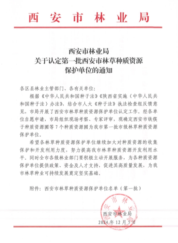 近日,根据《中国人民共和国种子法》、《陕西省实施〈中国人民共和国种子法〉办法》,西安市林业局开展了西安市林草种质资源保护单位认定工作,7家单位被认定为西安市第一批市级林草种质资源?;さノ弧I挛魇∥靼仓参镌埃ㄉ挛魇≈参镅芯克┨厣凵椭参镆盅被∮坝τ醚芯客哦由瓯ǖ奈靼彩刑曜又种首试雌曰衽隙?。