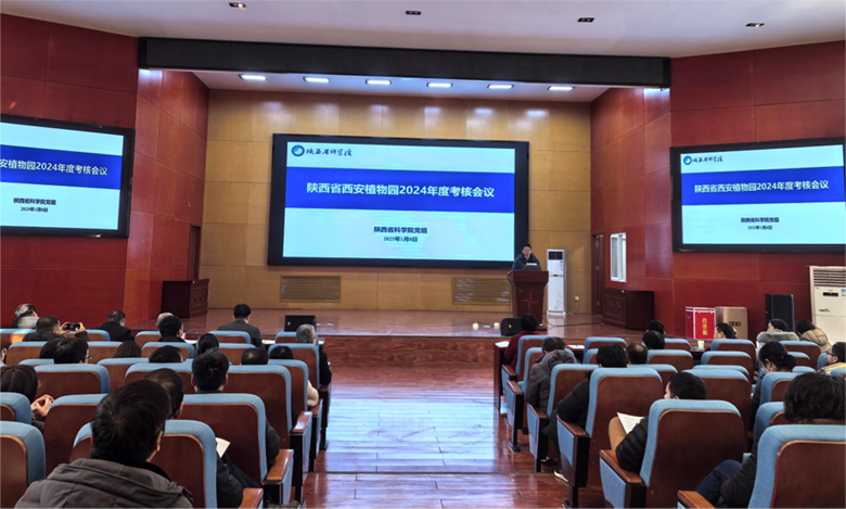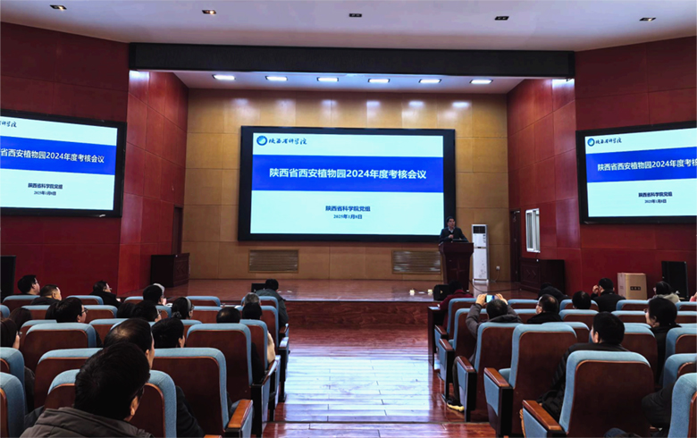 2025年1月8日下午14:30,陕西省西安植物园2024年度领导班子及领导人员暨党委书记抓党建述职考核大会在我园翠华园区召开??己俗樽槌び缮挛魇】蒲г涸撼ふ攀赘盏H危己俗槌稍庇稍旱匙槌稍崩罱?、原院党组成员康贸易、党群工作处处长杨文正、组织人事处副处长时汇涛及院属各研究所党委(党总支)书记等组成。我园领导班子成员、中层干部、业务骨干和各类职工代表48 人参加考核会议,会议由组织人事处副处长时汇涛主持。