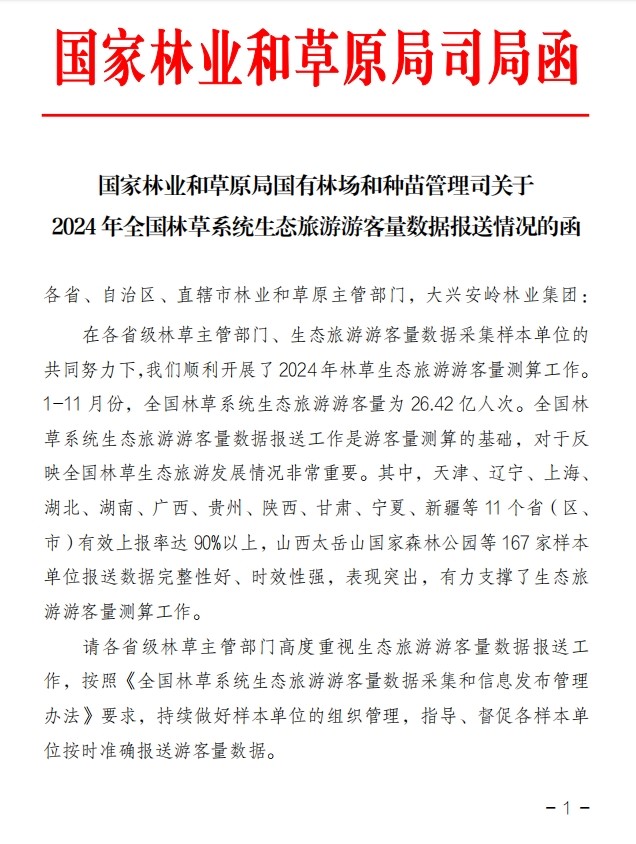 近日,国家林业和草原局林场种苗司发布《关于2024年全国林草系统生态旅游游客量数据报送情况的函》,对在2024年林草生态旅游游客量测算工作表现突出的单位进行表彰,其中陕西省西安植物园榜上有名。