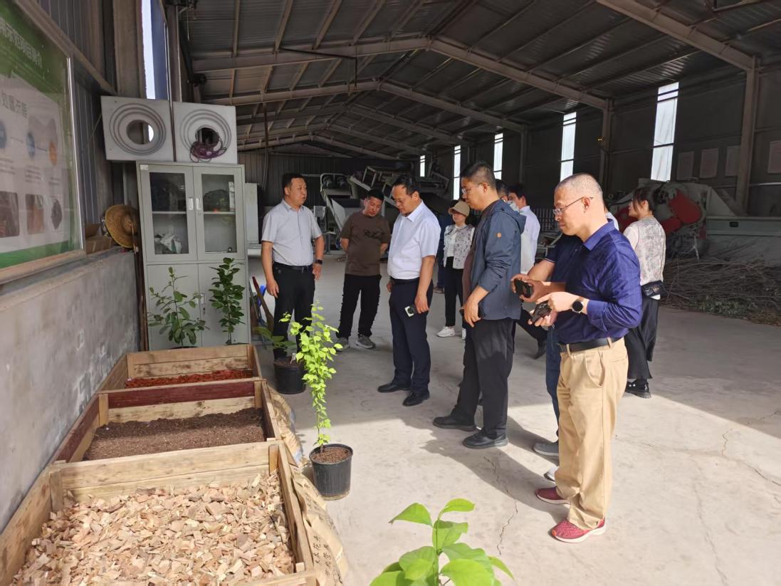考察团一行首先来到园区内园林废弃物资源化利用示范站,听取刘立成对园林废弃物处置流程、园林有机覆盖物的生产和运用、有机质堆肥高温发酵腐熟及栽培植物等情况的详细介绍。
