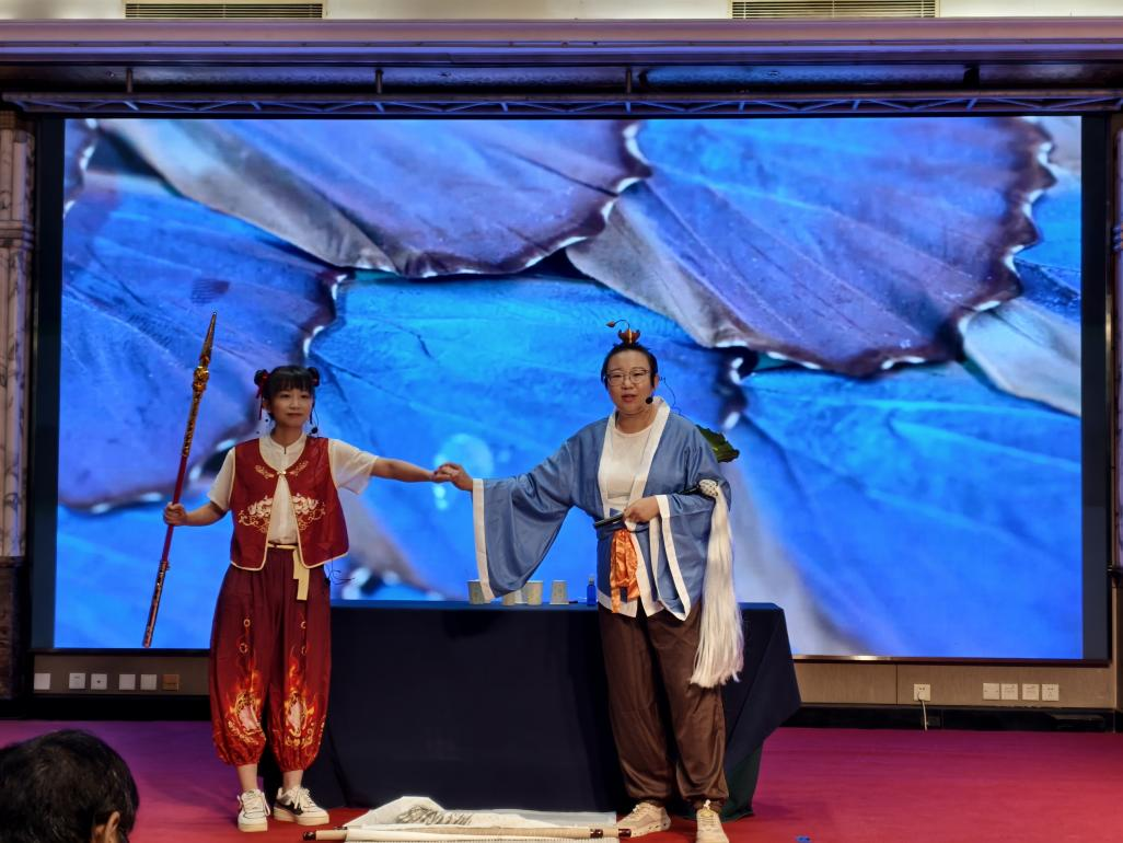 活动现场,参赛队伍不仅带来了各自研究领域的科研成果和科学知识,新颖的实验编排和有趣的表演形式既充分展现科技、科普工作者的创新活力与风采,也刷新了公众对科学实验的认知。其中,来自我园科普宣教中心团队的丁芳兵、王雅婧代表中国科学院西安分院参加此次比赛,她们带来题为《荷叶超疏水机理及其应用》的实验展演。该展演巧妙地将神话剧情与实验相结合,用通俗易懂的方式讲述了荷叶的特殊构造,用有趣的实验向我们生动诠释科学家如何在纳米级尺度进行超疏水材料等的研究,让公众感受到科学传播的无限创意与魅力。