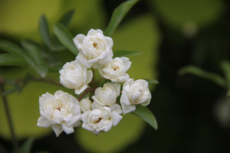 七、木香花(Rosa banksiae)蔷薇科蔷薇属,攀援小灌木。跟紫藤、凌霄一样,木香花也是一种攀援植物,不过木香花不会缠绕,也不会吸附,它的拓展,靠的是长长的枝条,而其固定靠的是枝上的皮刺。木香花有黄白二色,单瓣重瓣之分,各有韵味,重瓣的款式神似微型月季,看起来华丽而优雅。木香花一般在晚春至初夏开放,盛花时满树的花苞几乎在同一时间盛开,当真是繁花似锦。许多月季、玫瑰或蔷薇的花香都是要凑近了才能闻到,木香花则散发出来,在周围的空气中就能闻到,也因此有七里香、十里香之名。因其内含芳香油,木香花可以用来泡制花茶,也可以制作糕点和化妆品精油。