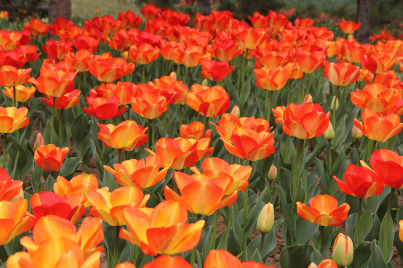 本次花展以“郁”见春天为主题,花展布展面积约为6000平方米,其中郁金香栽种面积3000平方米,主要分布在本草园、百卉园和水景园等核心区域。此次花展不仅保留了历届花展呈现的郁金香品种,还引进了一些郁金香新品种,如红色长安、人见人爱、德马克、白色骄傲、唐吉坷德、饰边等,包括百合型、牡丹型、球型等主要花型,共计20万株、30余个品种。由于郁金香分早、中、晚期品种,园区在郁金香种植过程中结合了花色和花期进行搭配种植,让花色和层次显得更加丰富、更具有视觉冲击力,从而让游客获得更多美的享受。热情的火红、灿烂的金黄、娇艳的粉红、华贵的烟紫……一朵朵郁金香簇拥在一起,远远望去,各色郁金香连成一片花海,像一块块彩色的地毯,美不胜收。除此之外,园区还配以15万株的金盏菊、三色堇、花毛茛、毛地黄、飞燕草、鲁冰花、虞美人、金鱼草等各类花卉高低错落进行展示,给前来踏青赏花的游客朋友奉献一场精彩的视觉盛宴。