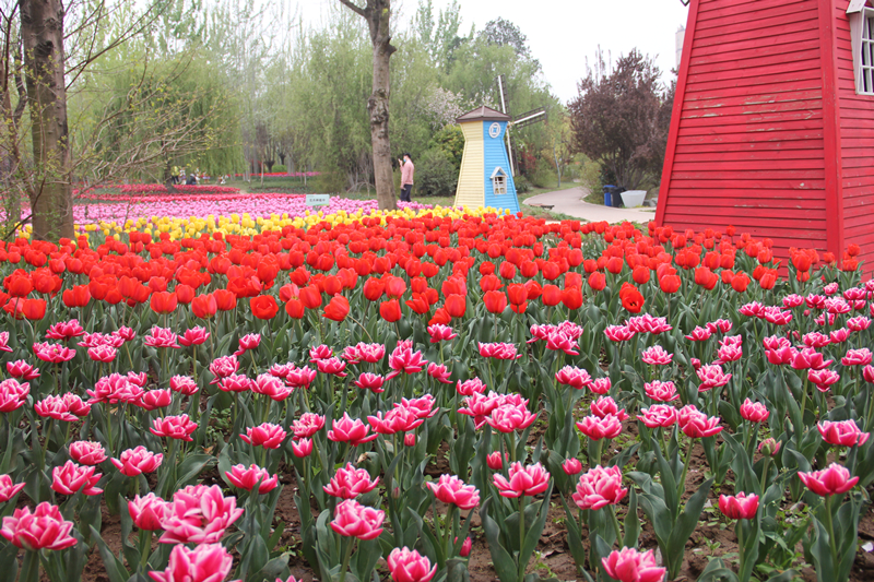 今年花展的表现手法也趋向多元化,运用巧妙的布局,将园区的自然环境辅以风车、熊猫、天鹅等造型,与郁金香相呼应,烘托出了田园气氛,展示了郁金香展的浪漫氛围。值得一提的是,为了让游客有置身花海的感受,今年的春季花展还特意打造和突出融入式体验。通过实物造型、主题花坛、园林小品相结合的布展手法,配合地面布置花毛茛等草花,形成春日里的观花廊道,给游客更加丰富的视觉感受。同时,还打造了几个清新浪漫的赏花区域,供游客拍照打卡。